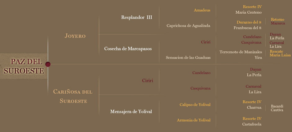 Paz del Suroeste, yegua extraordinaria de nunca acabar desde que sale hasta que llega es con el mismo tacatacataca y se va poniendo mejor y entre más le pide uno más le gusta trabajar. Mi mayor respeto se lo ha llevado Paz, hoy es una gran reproductora mundial del paso fino.